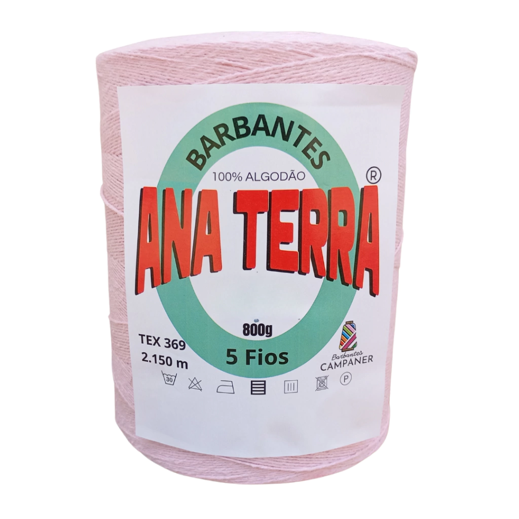 O Barbante ANA TERRA é confeccionado com fios 100% algodão, sendo empregado nele cabo na espessura de 8/1 Ne, e um processo de torção especial, deixando o barbante com mais finos, delicados e elegantes, que o torna único e diferenciado, também apresenta excelente acabamento, compactação, maciez, cores vibrantes, pureza dos fios sendo não alérgicos, visando entregar o melhor custo e benefício aos artesãos.